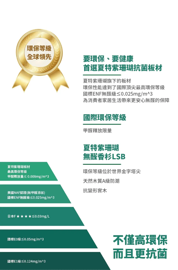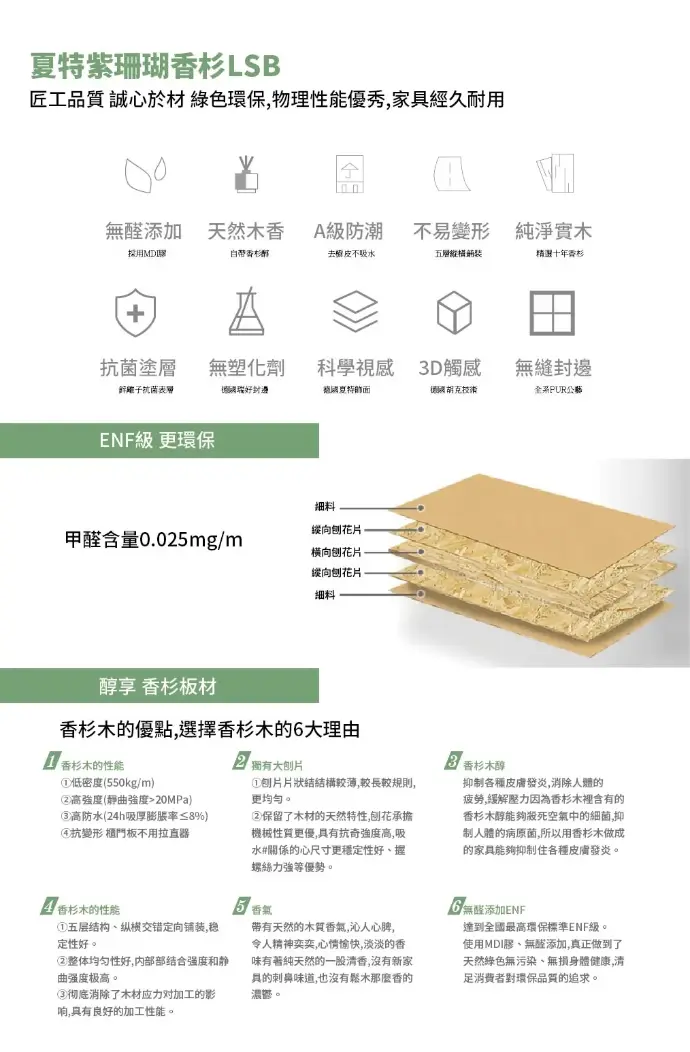 甲醛台灣F1、日本F4星、ENF級,無TVOC、重金屬、塑化劑等有害物質,嬰孕可使用